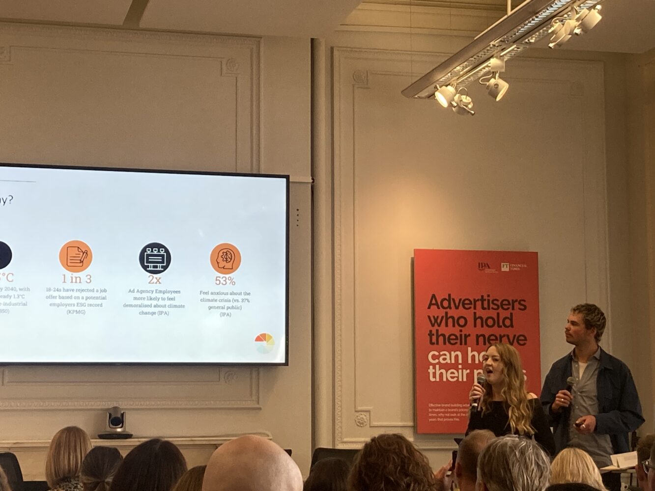 One of the Summit’s most consequential sessions came from the Ad Net Zero Young Leaders, presenting their work over the last year which has been built from insights courtesy of the IPA & Ipsos ‘Climate Anxiety’ research, with further research from KPMG and Credos, including-